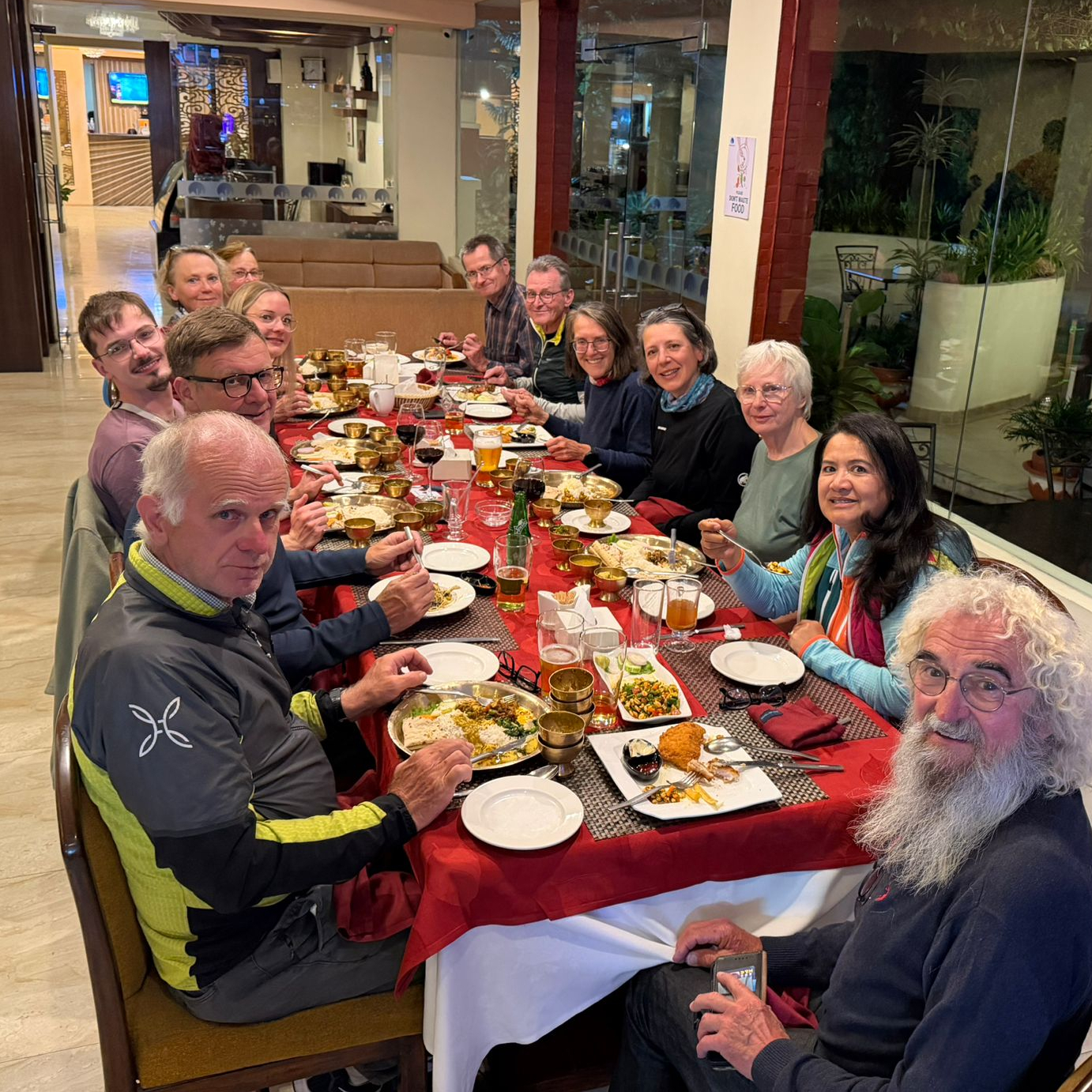 Alle genießen die Zeit nach den intensiven Trekkingtagen. Manche mit Curry, manche auf der Tanzfläche, manche auf der Hotel Dachterrasse.